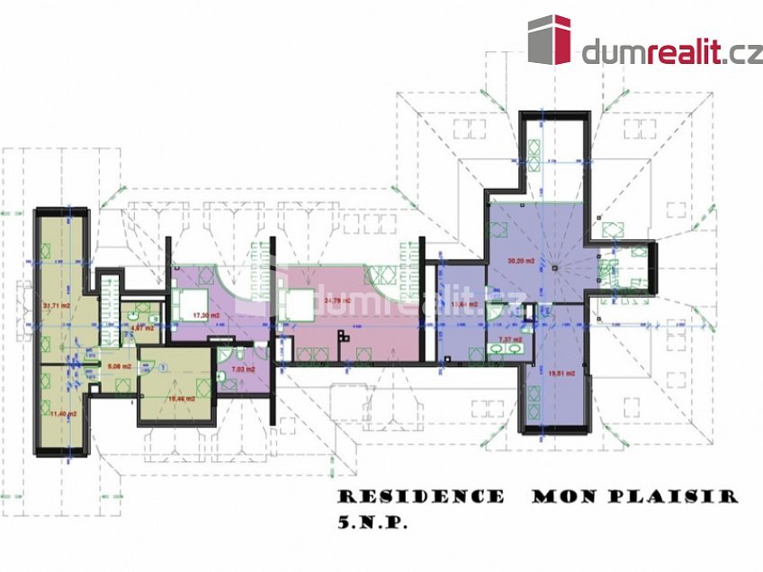 Naše společnost Vám zprostředkuje prodej luxusních bytových jenotek a apartamentů v residenci Mon Plaisir v Mariánských Lázních. Objekt je koncipován tak, aby uspokojil požadavky nejnáročnějšího klienta. Chtěli jsme pro Vás připravit něco výjimečného, proto jsme hledali lokalitu, která je v docházkové vzdálenosti do 15 min od hlavní promenádní Kolonády a zároveň v plné míře nabízí to, co je pro Mariánské Lázně nejcennější – klidný pobyt uprostřed parků na čistém vzduchu překypujícím kyslíkem. Našli jsme místo u soutoku Úšovického a Třebízského potoka v lokalitě zvané Lunapark. Zde je stavební pozemek s původním historickým vodojemem zásobujícím dříve Mariánské Lázně pitnou vodou. Klenuté stropy vodojemu zachováváme jako historickou památku v podzemí novostavby residence. Příjezd vede po málo frekventované Třebízského ulici vedoucí směrem k obci Prameny. Pěší přístup do centra města vede lesoparkem po asfaltových cestách Třebízského ulicí kolem hotelu Parkhotel Saint Moritz (kompletní balneoprovoz, bazén a restaurační provoz), Městského divadla na Hlavní třídu. Souběžně s ní je možné využít i druhou cestu – Chopinovo ulici vedoucí kolem tenisového areálu na hlavní Kolonádu. Vydat se je možné i pěší upravenou parkovou cestou podél potoka a přes kolonádu Lesního pramene. Dům s výraznou architekturou nabízí ve čtyřech nadzemních podlažích 15 nadstandardních bytů odlišných velikostí a dispozičním řešení od plochy 78 m² do 215 m². Byty umístěné v 3. patře jsou řešeny jako mezone