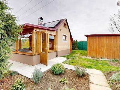 Naše společnost Vám zprostředkuje koupi krásného před třemi lety dokončeného domu typu bungalov v klidné lokalitě Chlumeček u Chebu. Dům obklopuje rovinatý pozemek s dokončeným plotem a upravenou zahradou o celkové rozloze 711 m² z čehož 174 m² tvoří zastavěná plocha. Řádně zkolaudovaný a dokončený dům stavěný z pálených broušených cihel nabízí dispozici 5+kk na ploše 140 m² a je napojen na inženýrské sítě včetně vodovodního řadu a elektřiny. Vytápění zajišťuje tepelné čerpadlo, ohřev teplé vody pak samostatné druhé čerpadlo se zásobníkem. V obývacím pokoji je krb s komínem a krbovou vložkou jako alternativní zdroj tepla s horkovzdušným rozvodem. Způsob topení je v celém domě podlahové. Rozložení místností: velkorysá kuchyně spojená s obývacím pokojem a jídelním koutem odkud je přístupná terasa, pracovna, 3 ložnice, z nichž u jedné je k dispozici šatna, dále koupelna s vanou, sprchou a toaletou, další samostatná toaleta, předsíň, komora a chodba. Na chodbě je přístup na půdu, která skýtá spoustu úložného prostoru. Okna rodinného domu jsou izolační dvojskla. Na podlahách domu je převážně vinyl, v koupelně a na toaletě dlažba na betonové mazanině. Strop je zateplen. Střešní krytina je betonová taška Bramac. Dešťová kanalizace a srážkové vody jsou svedeny do dešťové nádrže. Odpad je do jímky. Parkování pro 2 automobily na vlastním pozemku. V blízkosti je veškerá občanská vybavenost včetně stanice MHD, nádraží, pošty, obchodů, restaurací atd.. Cheb nabízí kompletně opravené námě
